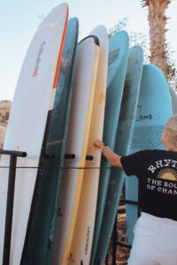 Śniadanie, lekcja surfingu z instruktorami, lunch, czas wolny (indywidualna eksploracja lub fakultatywne aktywności), joga, obiadokolacja